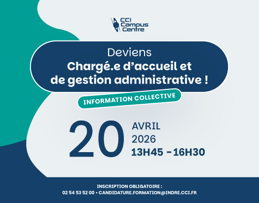 📞 Inscription par téléphone : 02 54 53 52 00, ou par mail : candidature.formation@indre.cci.fr